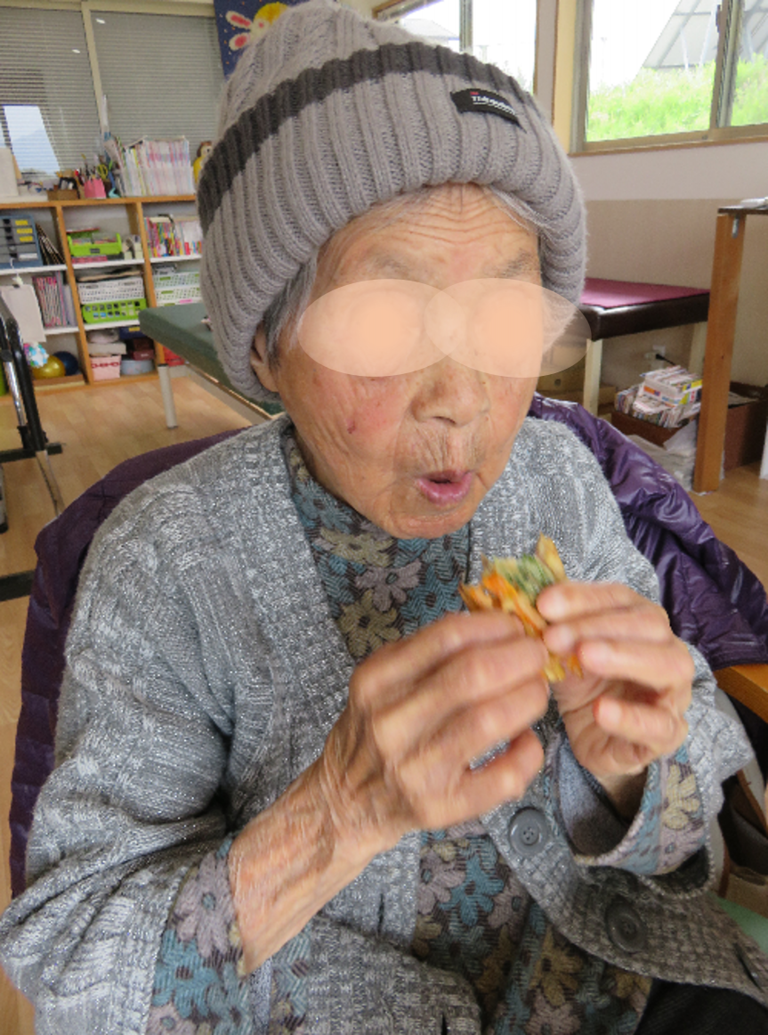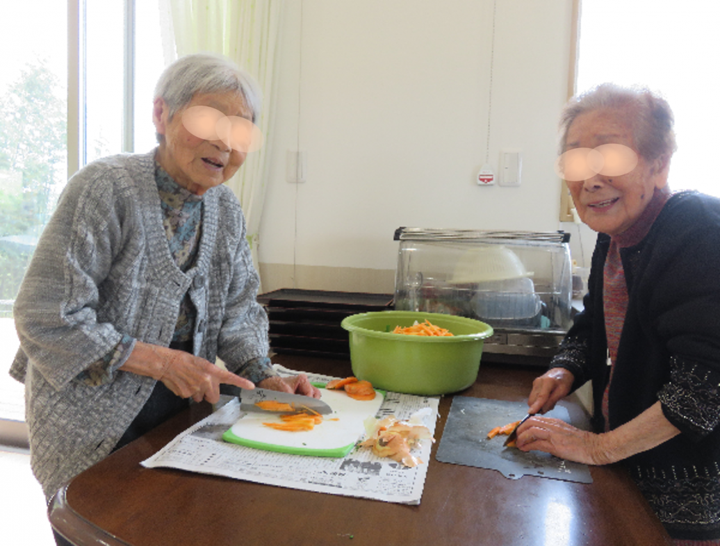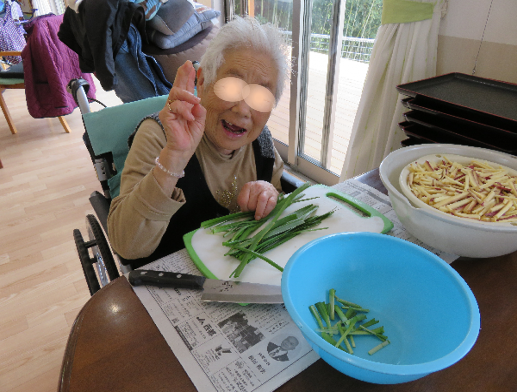 昨日に引き続き、デイサービスCANの菜園から収穫された野菜を用いた郷土料理「がね」をいただきました。生活に車いすが必要となり、調理をしないことが日常となられた方にもニラや人参を刻んでいただきました。「包丁は片手だから出来んがね」と謙遜されながら、左手でしっかり野菜を抑え刻まれました。また、娘さんが食事の準備をして下さり台所に立つ機会がほとんどないという方にも人参や玉ねぎを刻んでいただきました。慣れた手つきですぐに終わったので洗い物もしていただきました。昨日と同じく食べる事専門の方もおられ「揚げたてをみんなで食べるからおいしい」「ニラや人参の刻み方がいいから味がいい」「もう一つおかわり」などの声や笑い声でいっぱいでした。普段は食の細い利用者さまも3つ食べられ、娘さんに楽しそうに今日の事を話され、ご家族もびっくりされ喜ばれていました。 ![]() ![]() ![]() ![]() ![]() ![]() |