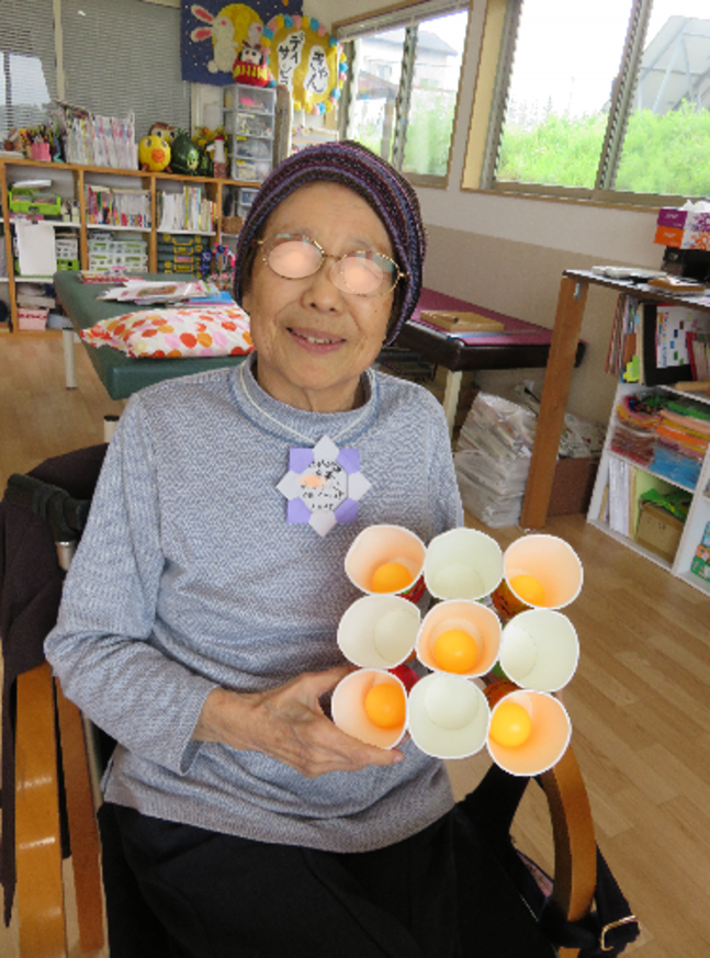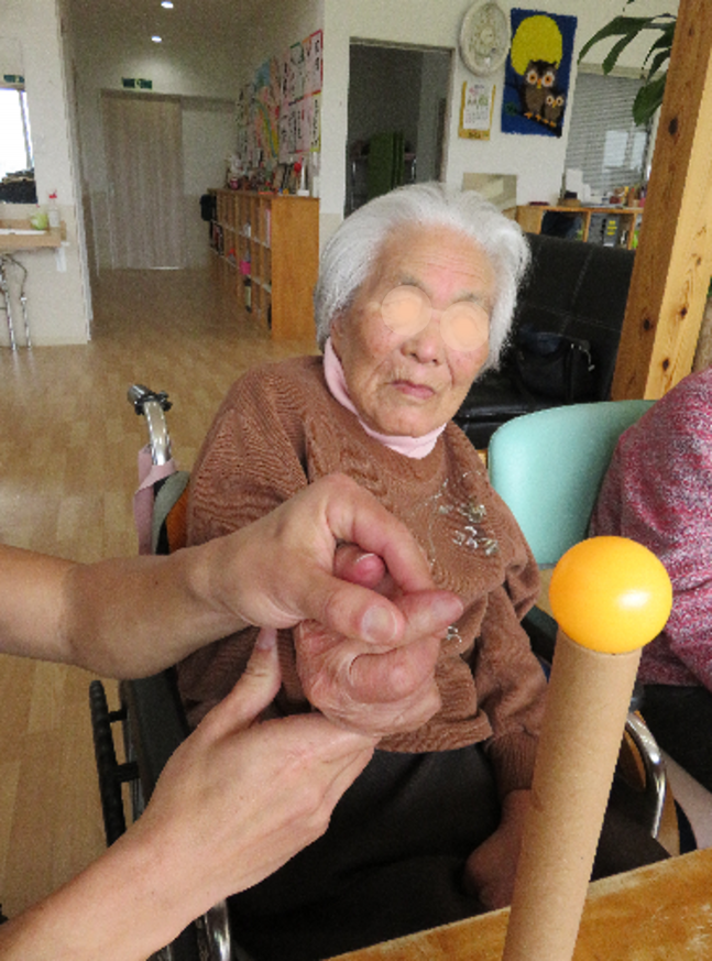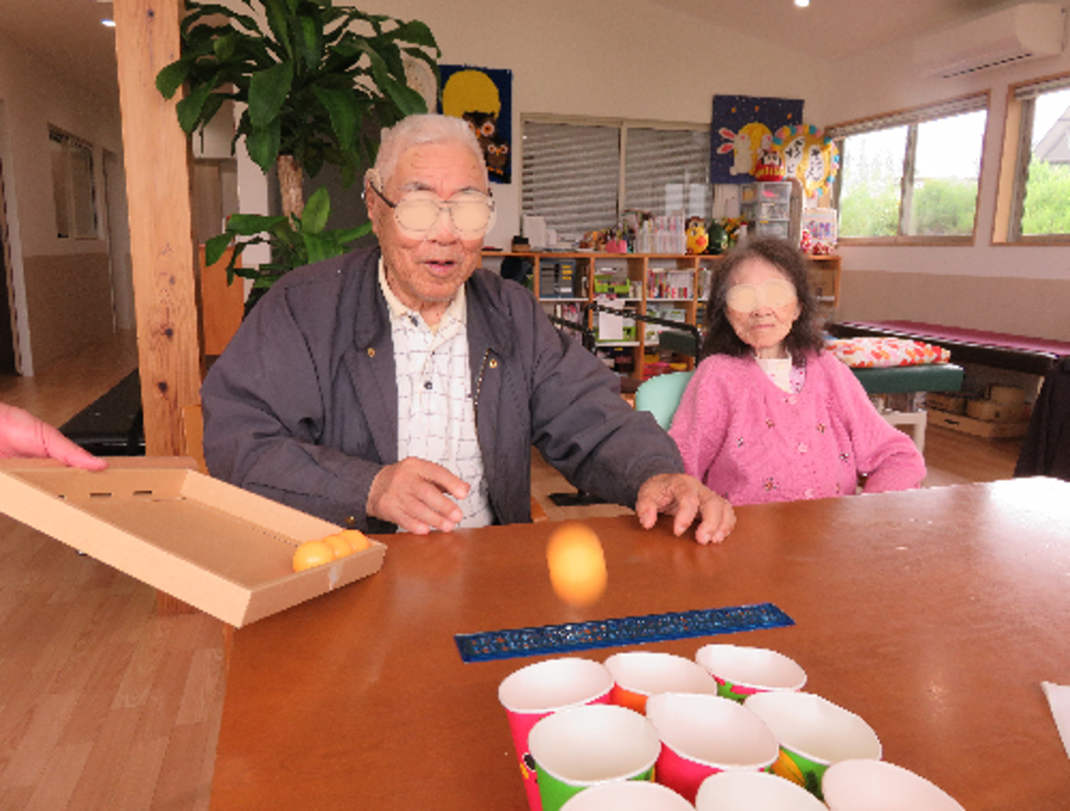 今週の集団レクリエーションは「ピンポンカップ」(デイサービスCANのオリジナル)。卓上で30センチメートル離れたカップにピンポン球をバウンドさせて入れる競技です。皆さまに各5球の挑戦をしていただきました。そして、お一人の方が初となるパーフェクトを達成されました。優勝おめでとうございます。本日のメンバーの中には月曜日に4球カップインで優勝された方もおられましたが、今回は0ポイント(逆の意味でのパーフェクト)というまさかの結果となり、そのギャップにご本人も大爆笑でした。ピンポン球を投げることが困難な方にはラップの芯を倒すことで参加していただきました。3球カップインされ本日の準優勝でした。また、姉弟で参加され、弟さまは全てカップにあたるものの1球も入らず0パーフェクトとなりましたが、お姉さまは淡々と3球カップインされ同じく準優勝されました。重ねておめでとうございます。とても笑顔と感動のあふれるひとときになりました。 ![]() ![]() ![]() ![]() |