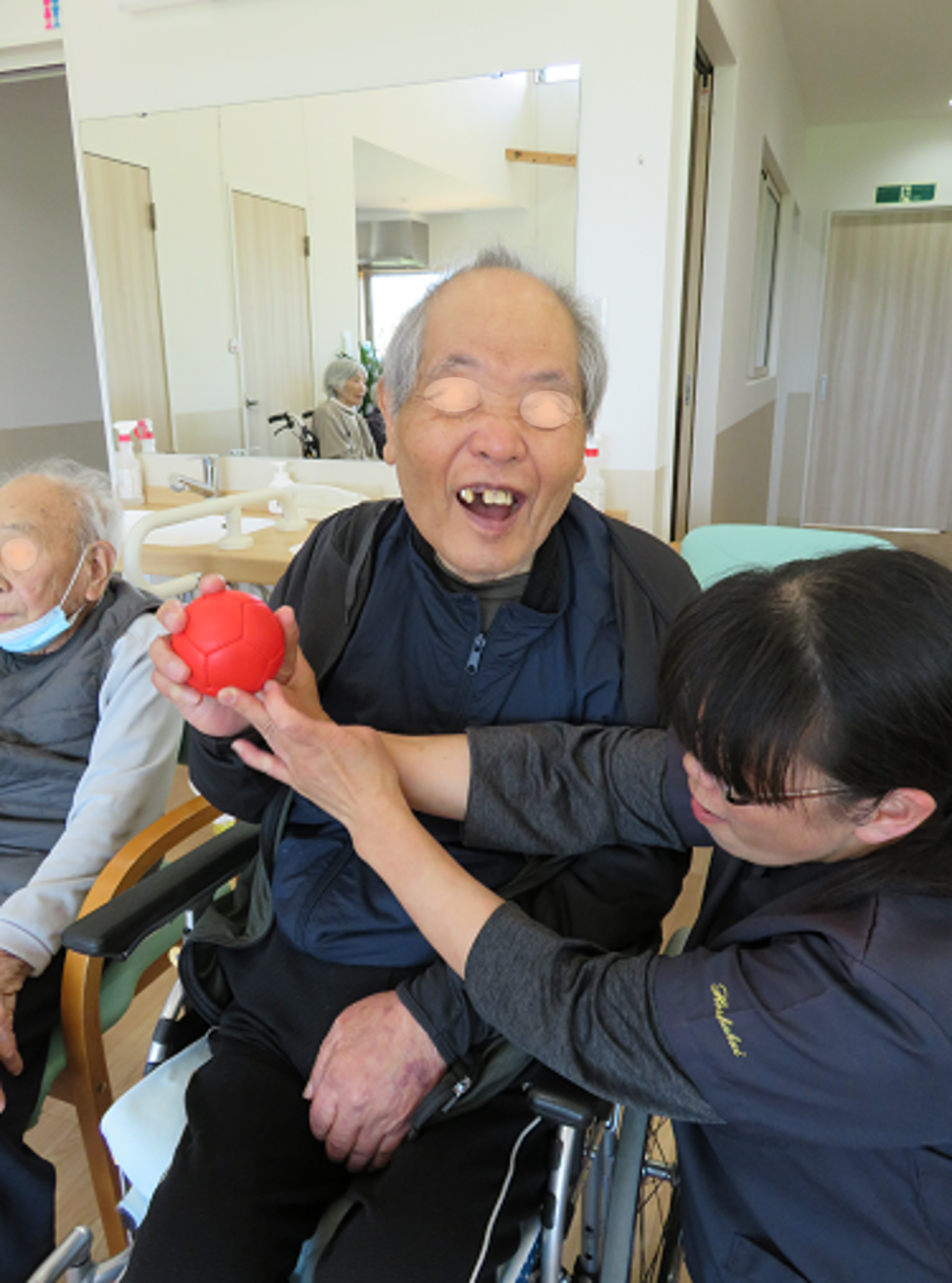 今週のレクリエーションは、パラリンピック(1988年ソウルパラリンピック~)の正式種目であるBOCCIA(ボッチャ)です。簡易ルール(デイサービスCAN独自)に変更して、1対1の個人戦トーナメント形式で大会に参加していただきました。ルールは、じゃんけんで勝った方が白球を転がす権利を勝ち取り、先攻(赤玉)となります。後攻(青球)の対戦相手と交互に3球づつ投げ合い、最終的に白球に最も近い球の色の方が勝ちとなります。昨日の優勝者に準決勝で僅差にて勝ち進まれた96歳の男性利用者さまが優勝されました。おめでとうございます。決勝戦は、初となる男性同士の組み合わせとなり、本日も大変な盛り上がりとなりました。 ![]() ![]() ![]() ![]() ![]() |