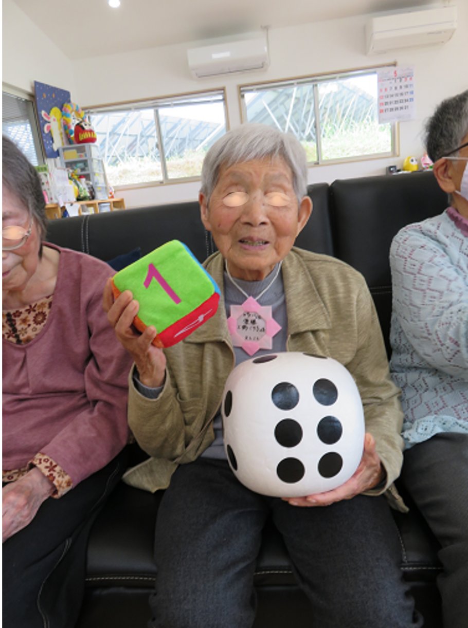 デイサービスCANでは、誰もが主役になれるように集団レクリエーションを楽しんで頂いております。今週のレクリエーションは、Wサイコロ。2種類のサイコロを用いて出た目の大きさを競うデイサービスCANオリジナルゲームです。今回は二つのサイコロの目の合計数が大きい人が優勝という設定(合計数が小さい人が優勝という設定の場合もあります)。競技を終えて、なんと3名の方が同点トップとなり優勝決定戦を行うことなりました。決定戦は一発勝負。一人目が5を出され、残りの二人は6を出さなければならない状況となりました。ところが二人目も5を出されました。そして三人目、なんとなんと6を出され決定戦に相応しい好勝負を制されました。 。