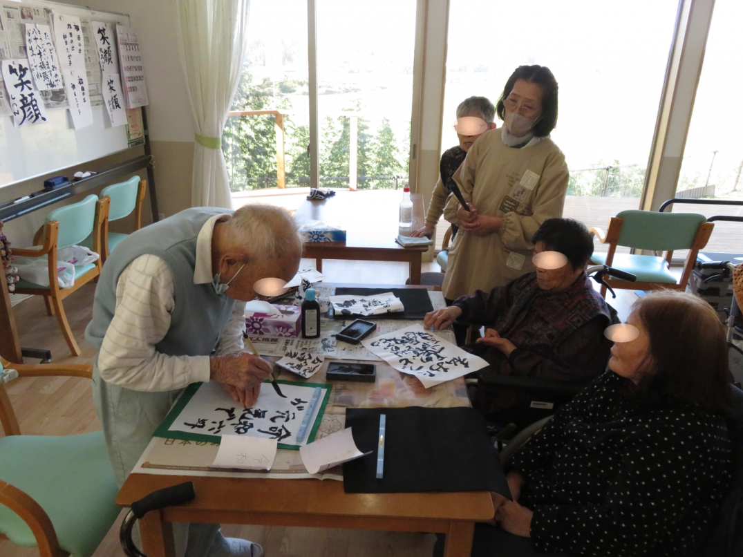 デイサービスCANでは、年始に書初めが行われます。令和6年も例年通り行われました。産み出された書は、それぞれのイメージ色の台紙に貼り展示されております。本日は、4月からCANの新しい仲間になられたお二人が書初めに臨まれました。お二人とも何度も筆をとり 「平和」と清書されました。 ![]() ![]() ![]() ![]() 令和6年1月の光景 ![]() ![]() ![]() |