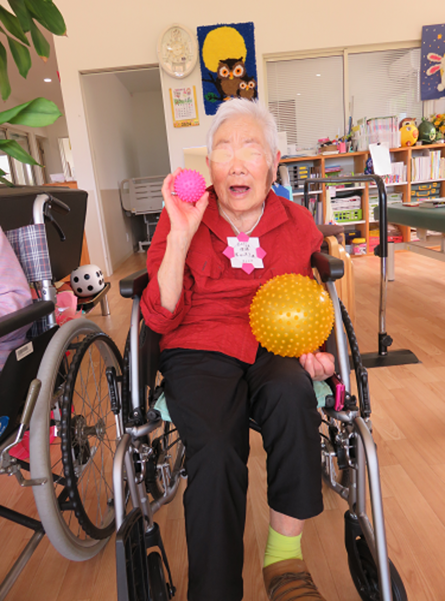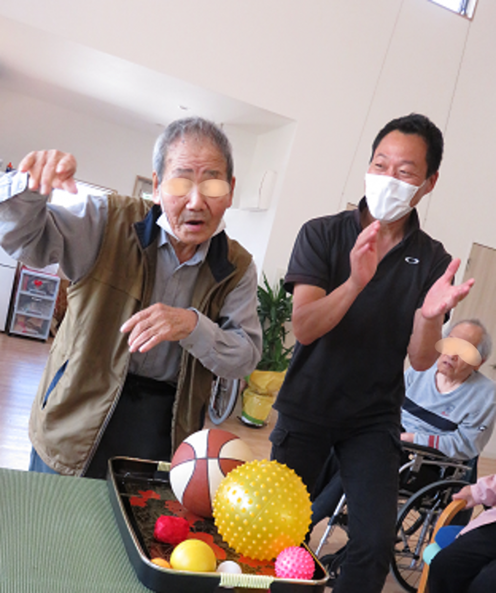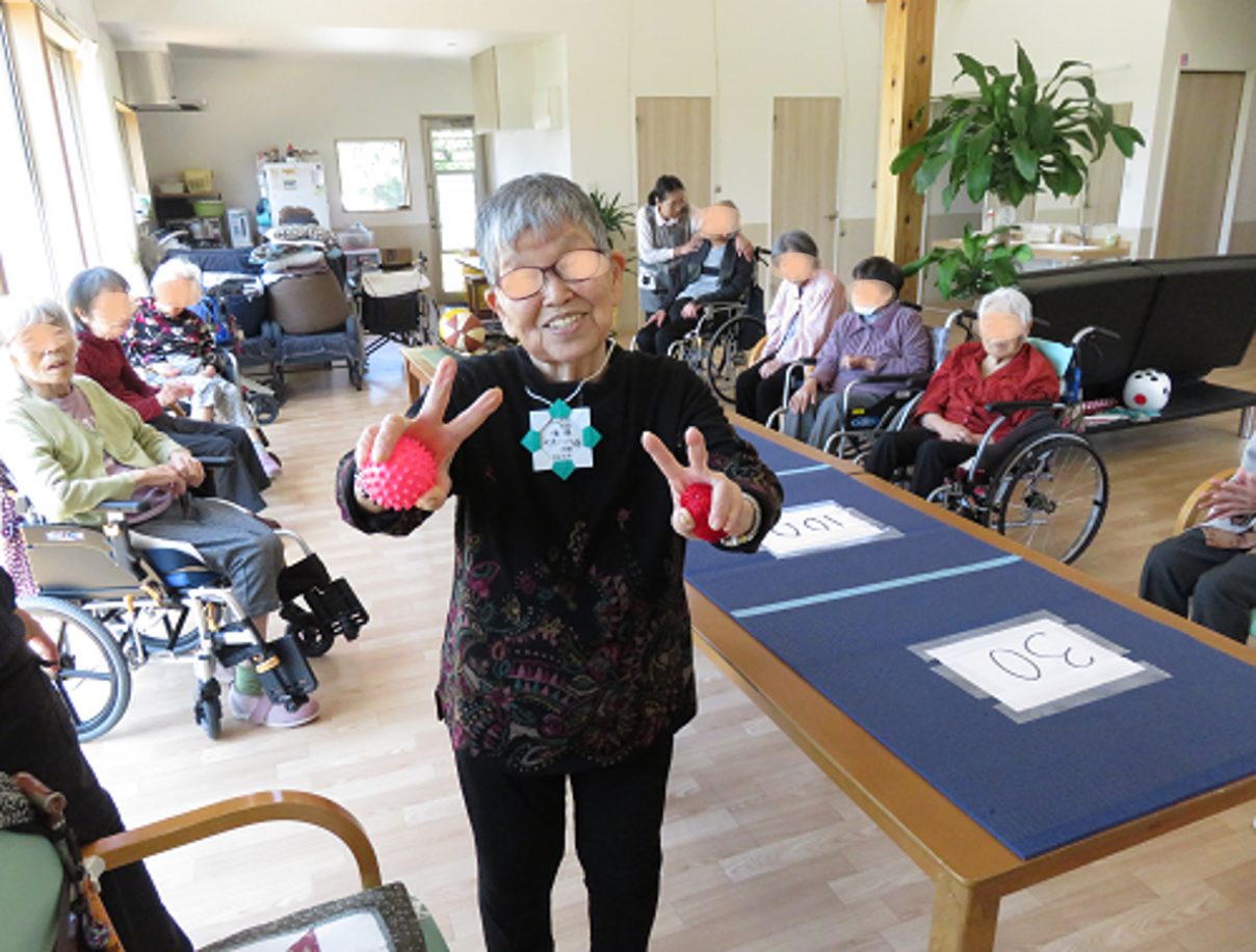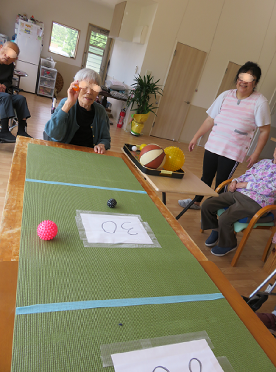 デイサービスCANでは、誰もが主役になれるように集団レクリエーションを楽しんで頂いておりますが、今週のレクリエーションは「おっ玉ゲート」。テーブルを繋げた卓上にヨガマットを敷き、手前から先端まで6つのゲートで仕切られた領域に得点が表示されます。参加者はボールやお手玉など数種類の中から3つだけ玉を選び、高得点を狙ってゲートを通過させるオリジナルゲームです。 ヨガマットに残った玉が得点になりますが、高得点の手前にはマイナス得点もあります。投球者の力加減や玉との相性が勝負を左右します。 今週も6名のチャンピオンが誕生しました。また、最終日に今週の自己最高得点を出された方には、チャンピオンさながら称賛の拍手が送られました。 月曜日のチャンピオン ![]() 火曜日のチャンピオン ![]() 水曜日のチャンピオン ![]() 木曜日のチャンピオン ![]() 金曜日のチャンピオン ![]() 本日のチャンピオン ![]() 本日、自己最高得点を出された方 ![]() 愉快な手踊りを披露して下さった方 ![]() 同世代交流により、参加するだけでも仲間意識が培われるようです。皆さまメダルを獲得することを楽しみにされていますが、同時に称賛の拍手が自然に生まれている状況です。今週も「おっ玉ゲート」といった集団レクリエーションにより、個別活動では見ることのできない活躍・挑戦・笑顔を共有できました。ありがとうございました。 |