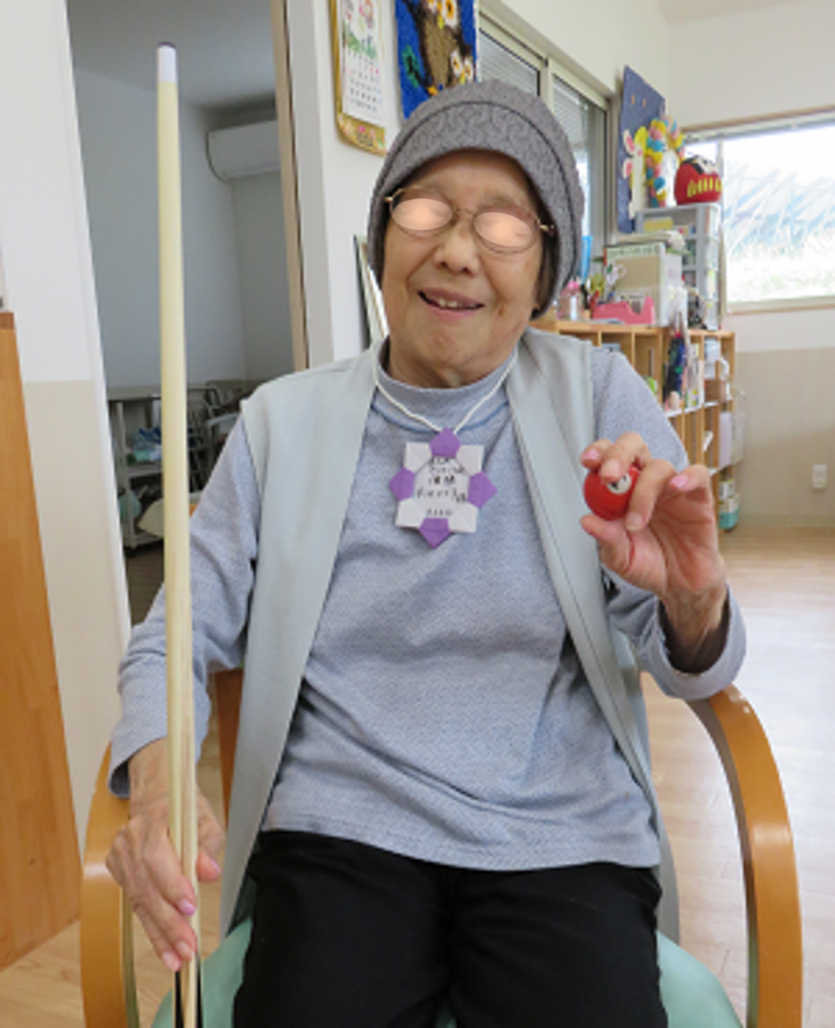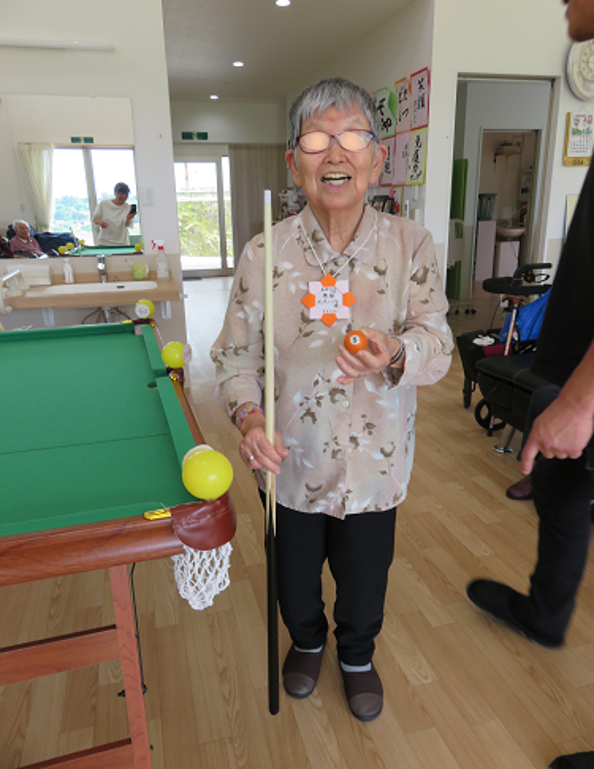 デイサービスCANでは、誰もが主役になれるように集団レクリエーションを楽しんで頂いておりますが、今週のレクリエーションは「玉入れビリヤード」。小さめのビリヤードを用いてオリジナルルールにて玉入れを楽しみました。 今週も5名?のチャンピオンが誕生しました(水曜日と金曜日の優勝者は同じ方でした)。 月曜日のチャンピオン ![]() 火曜日のチャンピオン ![]() 水曜日のチャンピオン ![]() 木曜日のチャンピオン ![]() 金曜日のチャンピオン ![]() 土曜日のチャンピオン ![]() |
