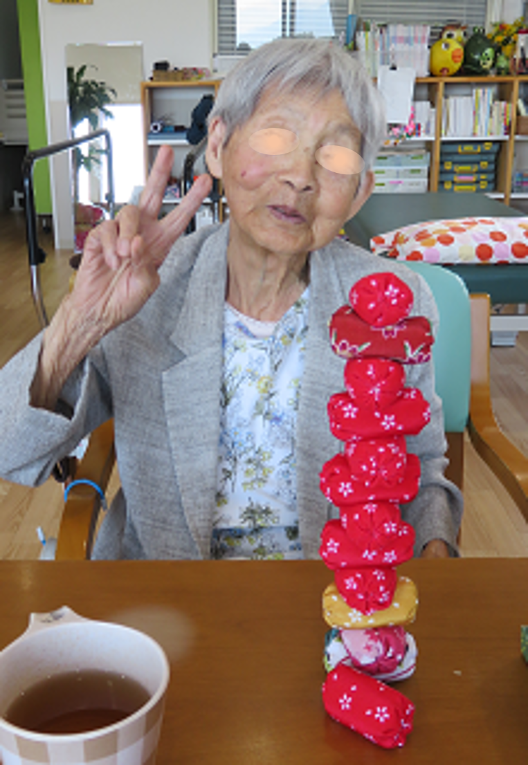 お手玉積みに挑戦し、これまでの3月23日に新記録10個、4月3日に新記録11個を達成された方が本日新記録12個を達成されました。今回も96歳での挑戦で新記録達成、おめでとうございます。 ![]() |