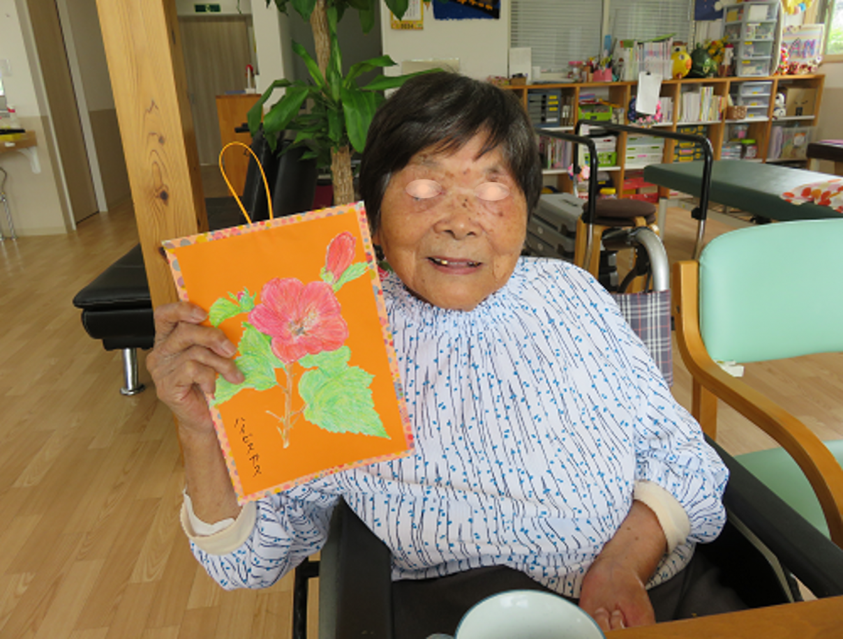 デイサービスCANでは、利用者さまひとりひとりの目標達成のため多くの活動が用意されています。作品つくりもその一つです。皆さまの「やってみたい」という想いが完成に結びついたとき、その過程を共にした皆が温かい雰囲気に包まれます。年を重ねると失うものが増えていきますが、デイサービスCANでは少しでも多くの「やってみたい」を大切に育てていきたいと思います。 今回はハイビスカスの塗り絵を壁掛けに仕上げられ、娘さんからプレゼントされたお気に入りの洋服で完成を喜ばれました。 ![]() |