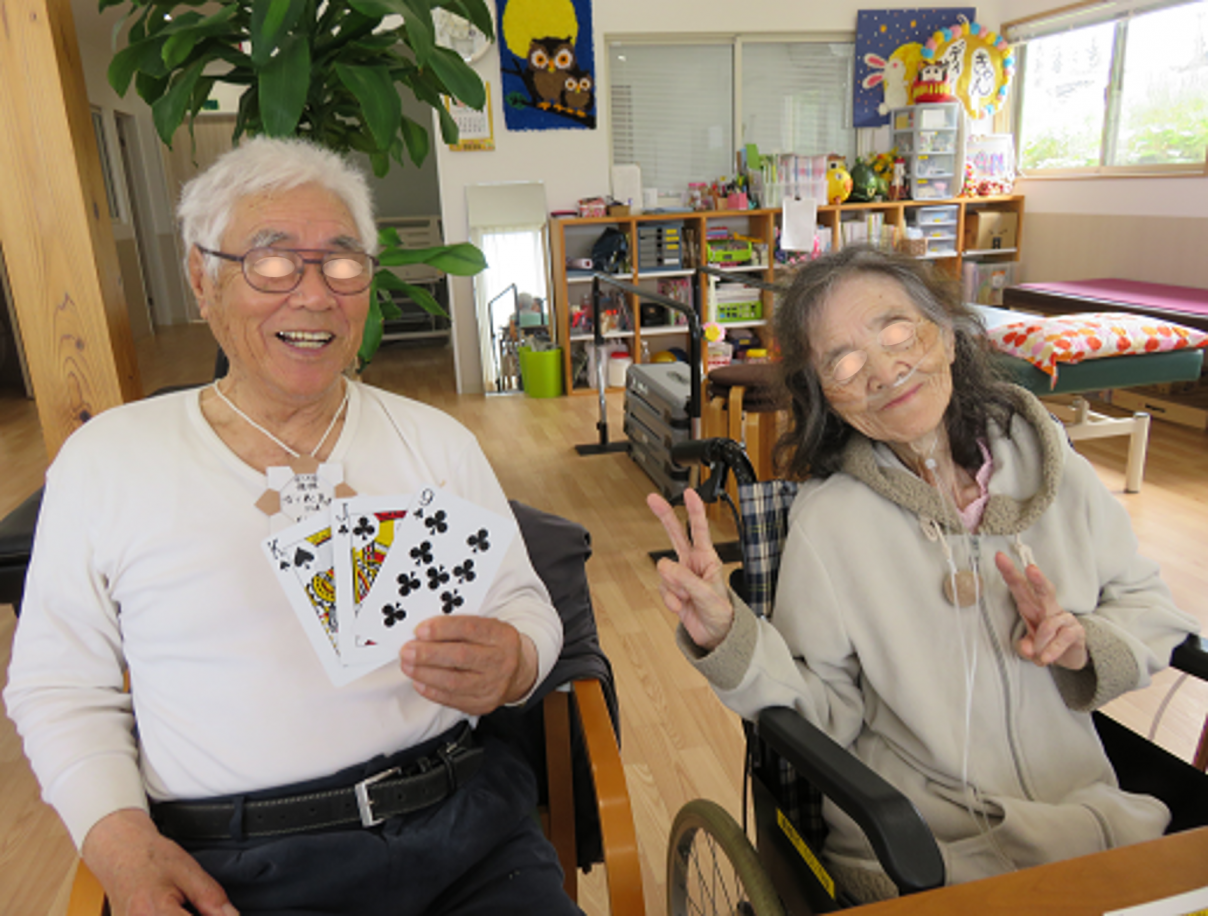 デイサービスCANでは、誰もが主役になれるように集団レクリエーションを楽しんで頂いております。サントラはトランプポーカーの変則遊び(デイサービスCANオリジナル)です。ひとり1枚づつ3回引き終わるまで行い、今回は引いた数の和が最も大きい方が優勝となります。特別ルールでスリーカードは+10点、ワンペア+3点、ストレート+3点、フラッシュ+3点となります。 昨日(14日金曜日)は、姉弟で活躍され、僅差で弟さまの優勝でした。 そして、本日は12日(水曜日)と同じく99歳でデイサービスCANの最高齢の方がルールをしっかり把握されての優勝を喜ばれました。おめでとうございます。 14日(金曜日)の優勝者 ![]() 本日の優勝者 ![]() |