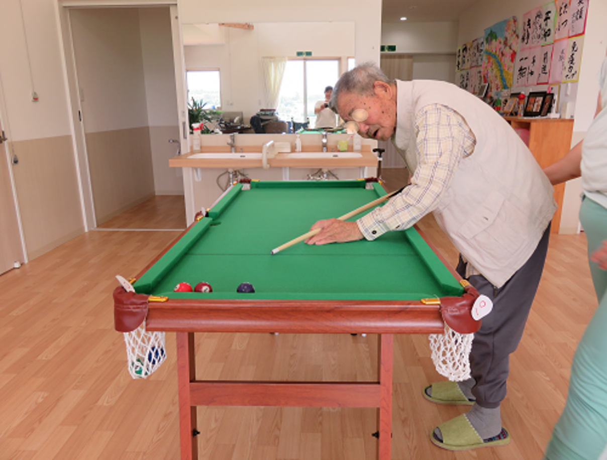「玉入れビリヤード」という、ビリヤードの道具を用いた玉入れ大会後も楽しみとして継続されています。狙い通りに球がポケットに入るだけでスカッとするとのコメントもありました。 ![]() ![]() また、今週も多くの作品が生まれました。年を重ねると失うものが増えていきますが、デイサービスCANでは少しでも多くの「やってみたい」を大切に育てていきたいと思います。 ![]() ![]() |