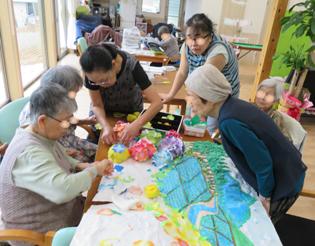 デイサービスCANでは、模造紙1枚分の季節の創作タペストリーを掲示させてもらっています。 今回は梅雨時期の紫陽花を皆で創作しました。 ![]() ![]() ![]() ![]() ![]() ![]() ![]() ![]() ![]() |