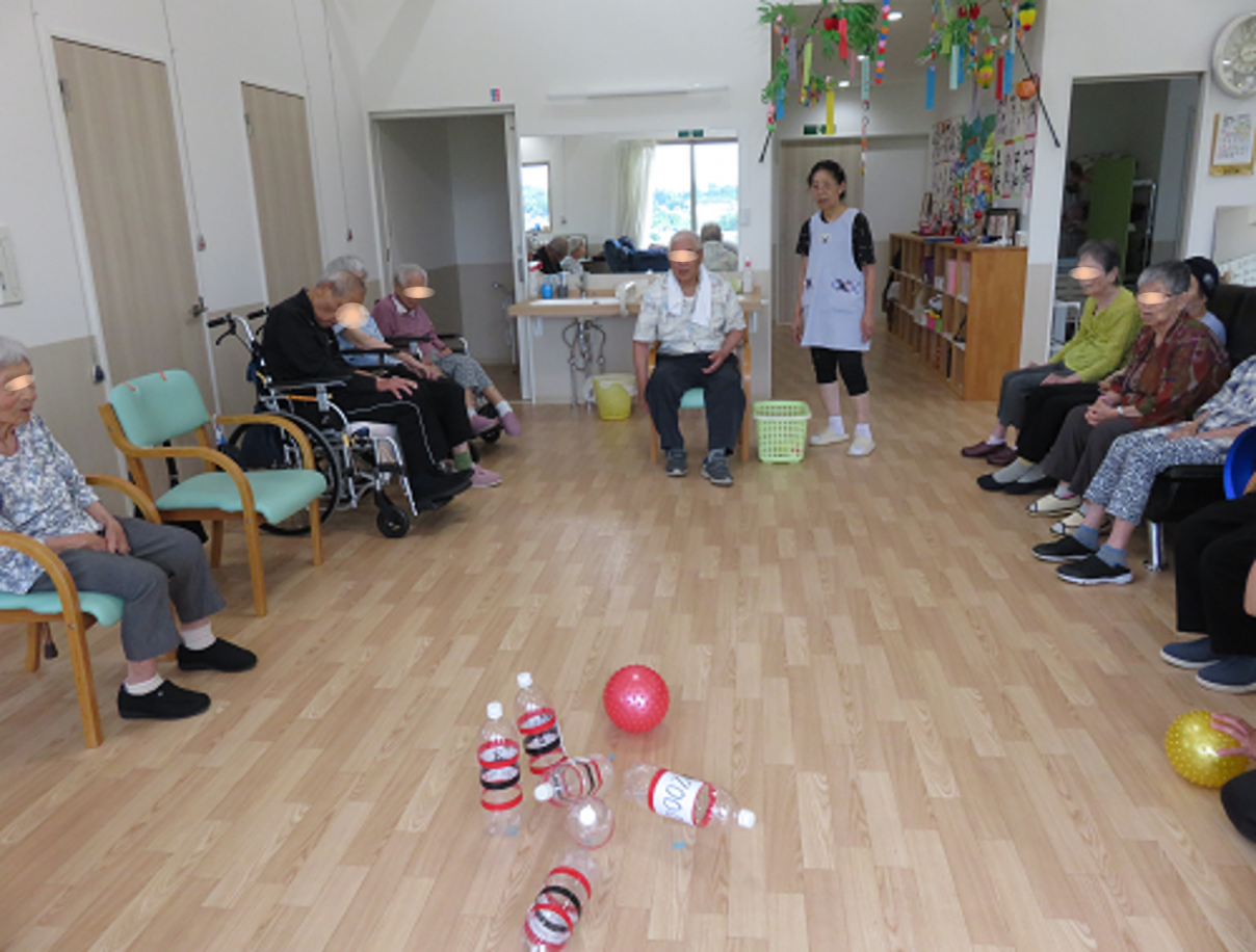 デイサービスCANでは、誰もが主役になれるように集団レクリエーションを楽しんで頂いております。今週はボーリング大会でした。ピンは1.5Lの空きペットボトル6本ですが、ストライクは16000点となります。ボールはバレーボール位の大きさのゴムボールを用いて一人2投していただきました。 ![]() 大会の様子 ![]() ![]() ![]() 大会初日(月曜日)の優勝者 ![]() 大会2日目(火曜日)の優勝者 ![]() 大会3日目(水曜日)の優勝者 ![]() 大会4日目(木曜日)の優勝者 ![]() 大会5日目(金曜日)の優勝者 ![]() 大会6日目(土曜日)の優勝者 ![]() 優勝された皆さまおめでとうございます。惜しくも優勝できなかった皆さまも、それぞれの目標達成に向けて挑戦された方々も、普段の生活では見られない表情をたくさん見せていただきありがとうございました。 来週は「海の日」がありますので、海にちなんだ新しいレクリエーションが用意されていますのでお楽しみに。 |