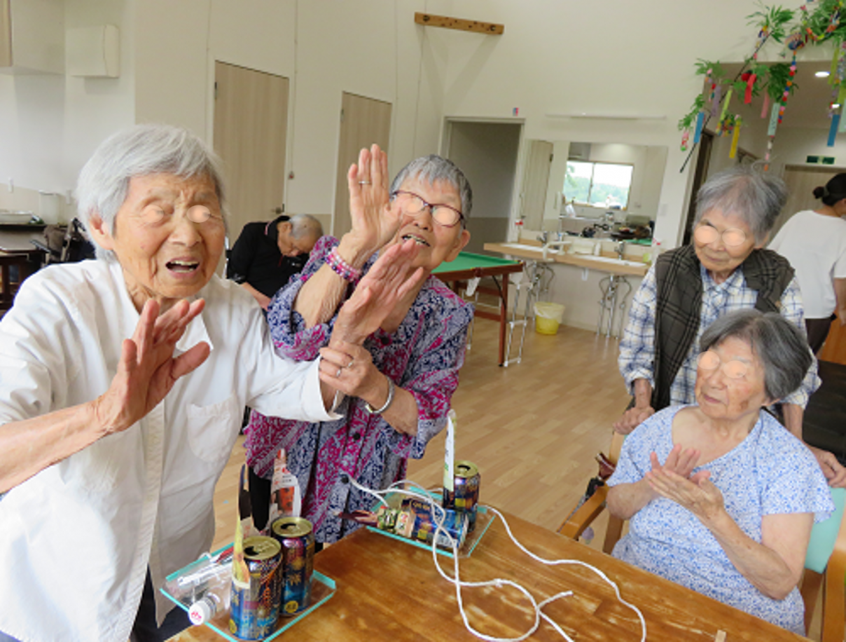 今週のレクリエーションはアルコーロ大会。「海の日」にちなんで、船に乗った6名(大人2・子供4)を救出する速さを競うCANオリジナルゲームです。荒波(割りばし)を乗り越えて、1人でも残っていれば早く到着した方の勝ちとなります。お互い6人全員倒れてしまった場合は最後の一人が倒れた時点の距離で勝敗が決まります。 ルール説明の様子(ゲームの名前は、このあとで決まりました) ![]() ![]() 大会の様子 ![]() ![]() ![]() 決勝戦 ![]() アルコーロ初代優勝者 ![]() 船に乗られている皆様、どの参加者も転倒・転落のない運行に努められておりますがすみません。 今週はお付き合いくださいませ。 ![]() |