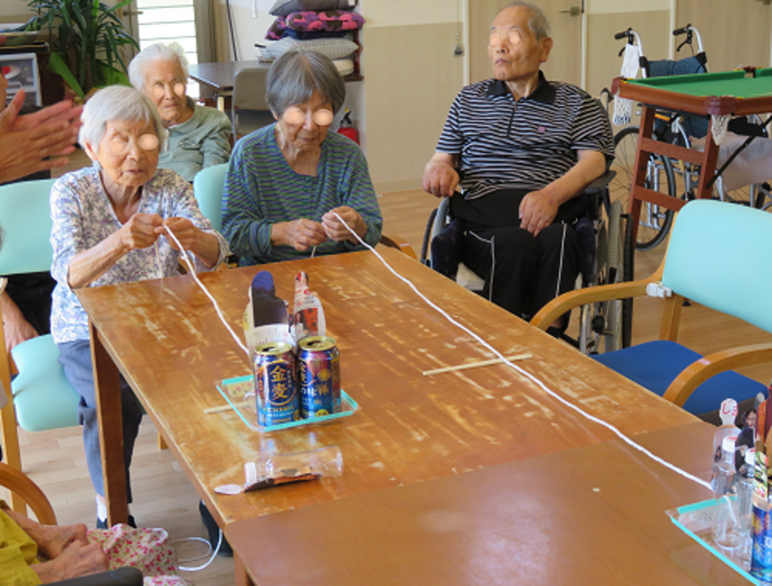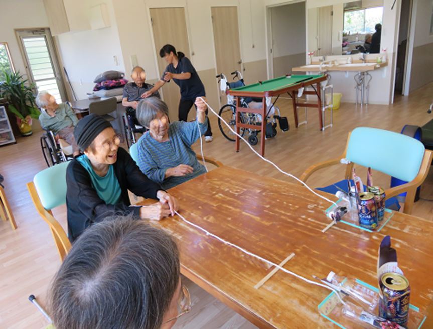 今週のレクリエーションはアルコーロ大会。「海の日」にちなんで、船に乗った6名(大人2・子供4)を救出する速さを競うCANオリジナルゲームです。荒波(割りばし)を乗り越えて、1人でも残っていれば早く到着した方の勝ちとなります。お互い6人全員倒れてしまった場合は最後の一人が倒れた時点の距離で勝敗が決まります。(大会の名前の由来については初日のブログ参照してくださいませ) 緊張あり、集中あり、一喜一憂あり、賑わう中での閉港となりました。 大会の様子 ![]() ![]() ![]() ![]() ![]() ![]() 大会3日目(水曜日)の優勝者 ![]() 大会4日目(木曜日)の優勝者 ![]() 大会5日目(金曜日)の優勝者 ![]() 大会6日目(土曜日)の優勝者 ![]() 優勝された皆さまおめでとうございます。惜しくも優勝できなかった皆さまも、それぞれの目標達成に向けて挑戦された方々も、普段の生活では見られない表情をたくさん見せていただきありがとうございました。 来週は、週後半から8月のカレンダー作成に入ります。 |