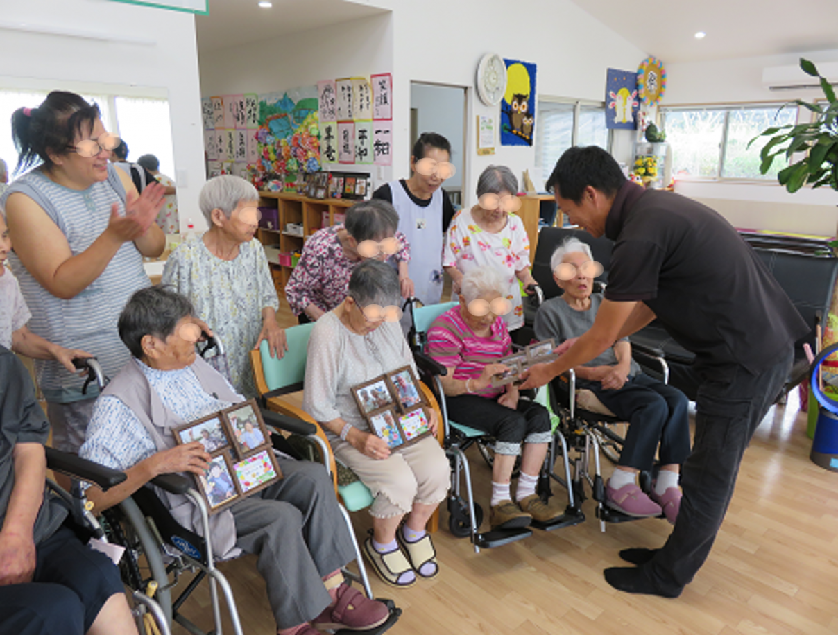 昨日と本日の二日間にわたり、カレーライスパーティによる合同誕生会(4~8月生まれの5名)が開催されました。誕生会の会場ディスプレイも皆で取り組み、野菜を収穫して下さった方、炊飯器のスイッチを押してくださった方、調理をして下さった方、食べることを楽しまれた方、みなさん主役になって記憶に残るイベントになったようです。誕生プレゼントの写真の盾を受け取らた5名の利用者さまにもとても喜んでいただけました。 ![]() ![]() ![]() ![]() ![]() ![]() ![]() ![]() ![]() ![]() ![]() ![]() ![]() ![]() ![]() ![]() ![]() 2日間の誕生会行事も充実した活動になりました。ありがとうございました。 今回の誕生者の中でおひとりは、当日の参加ができなかったので、後日プレゼントさせていただきました。 ![]() |