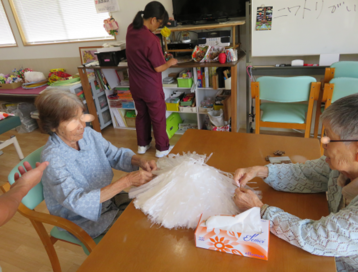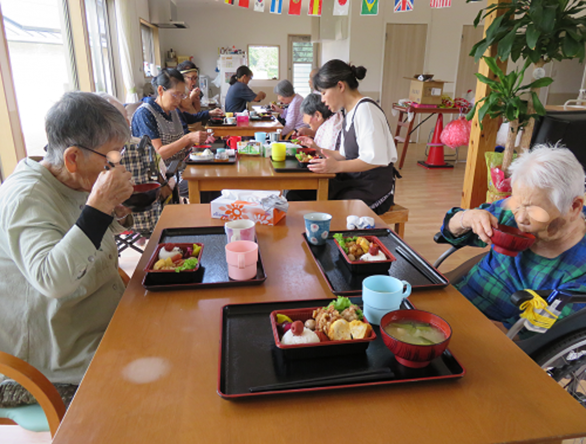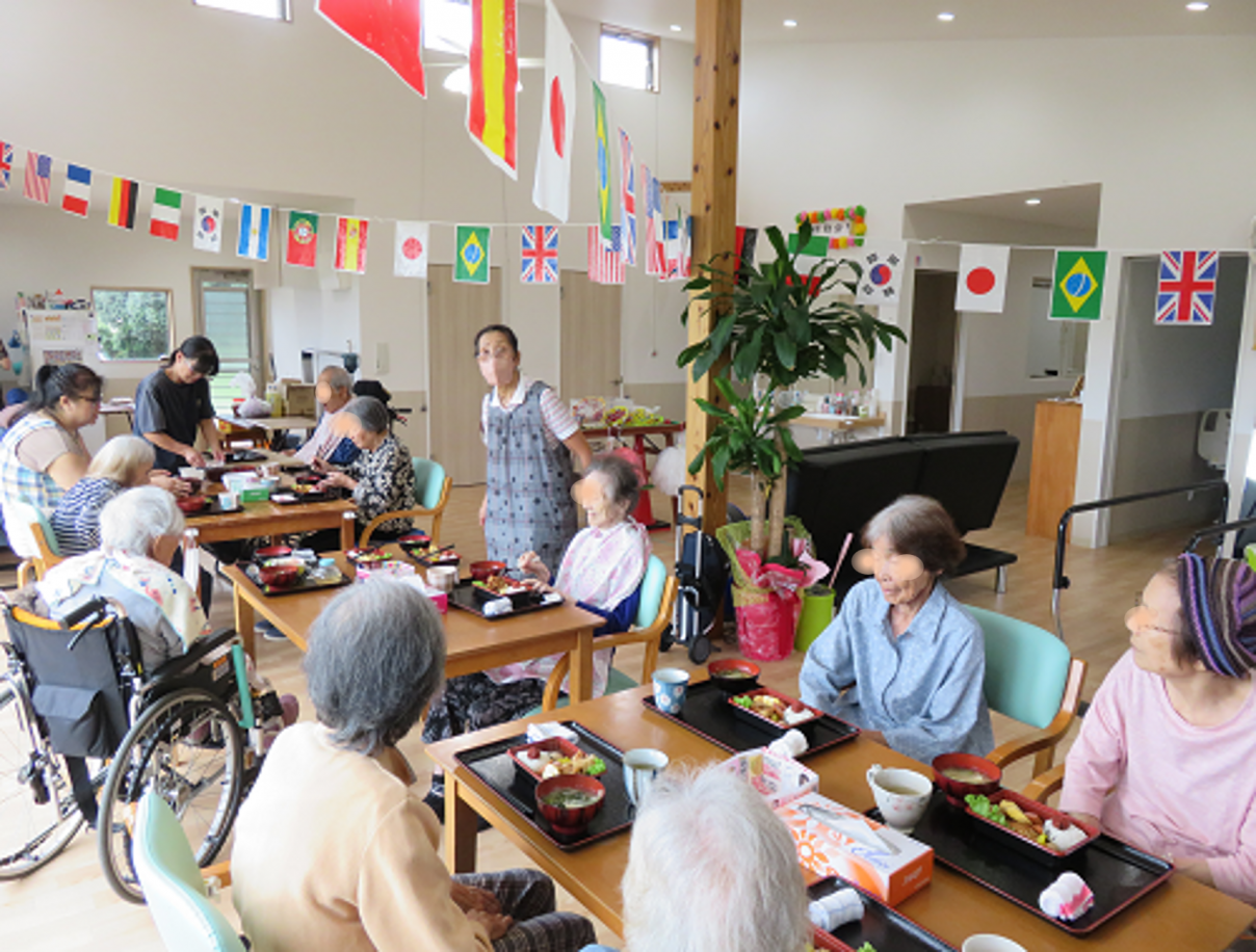 10月14日は「スポーツの日」でした。そこで、16日と17日の2日間に渡り「デイサービスCAN 秋の紅白大運動会」が開催されました。 運動会と言えばお弁当の話に花が咲きます。ある日「どうせなら弁当どん作っせ外で食ったらうめやろね」という声をいただくことができました。そこで今回は初の試みで「お弁当作りと昼食会」が運動会行事に追加されました。今月の運動会までの2週間は、集団レクリエーションの時間を活用し準備や競技の練習を行い当日を迎えました。 ![]() 事前準備や練習 競技種目5の障害競走は、輪投げが入ったら足で紐をたぐり、ペットポトルを引き寄せる速さを競います。このような内容が複雑なものは事前練習を行いました。応援合戦で用いるボンボンも皆でつくり、3・3・7拍子など応援の練習にも笑顔が溢れました。また、ファイナルリレーではスタッフが車椅子で変装をしますが、その小道具で愉快な雰囲気となりました。 ![]() ![]() ![]() ![]() ![]() ![]() ![]() ![]() ![]() ![]() ![]() お弁当作り、昼食会。 お弁当のメニューは事前の協議により「おにぎり・から揚げ・ソーセージ炒め・卵焼き・煮もの(卵とコンニャク)・梅干し・お漬物・味噌汁」になりました。味噌汁の具に畑で収穫された里芋と保存されている玉ねぎを使いました。雨天のため屋外での計画は見合わせることになりましたが、楽しい昼食会になりました。 ![]() ![]() ![]() ![]() ![]() ![]() ![]() ![]() ブログ更新して運動会の状況をお伝えしたいと思います。 お楽しみにお待ちください。 |