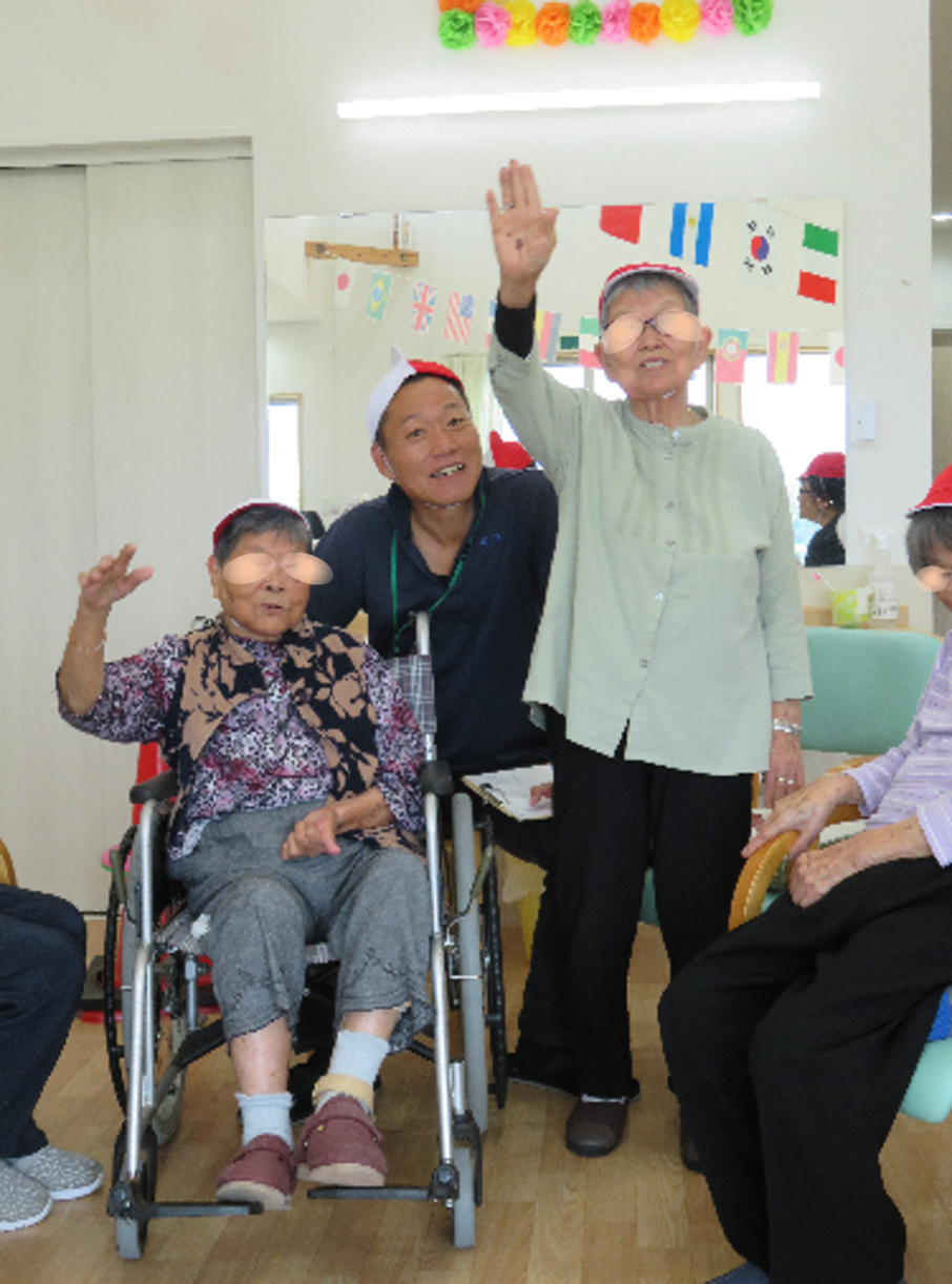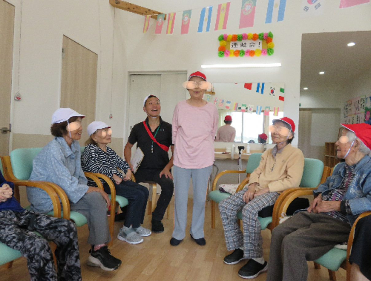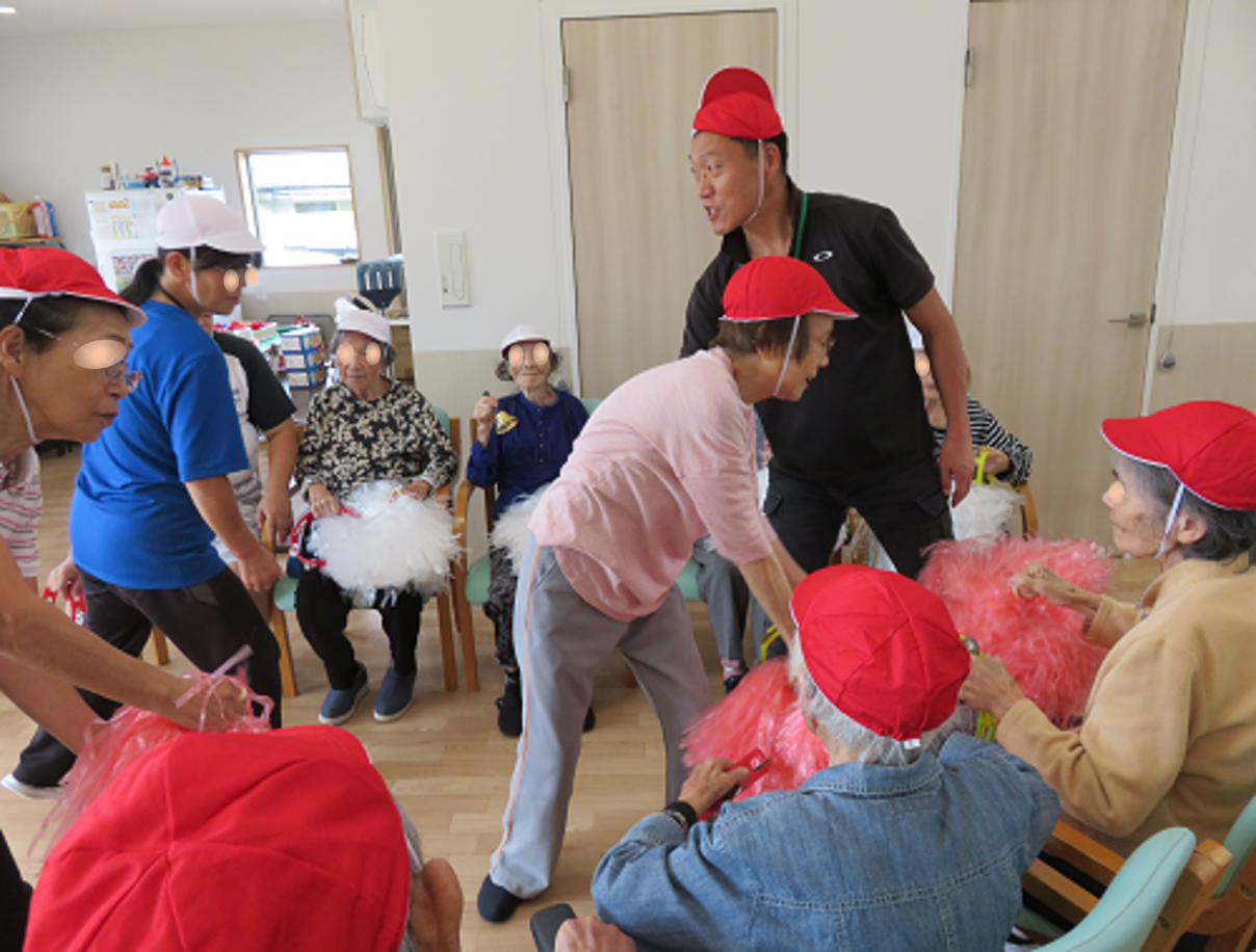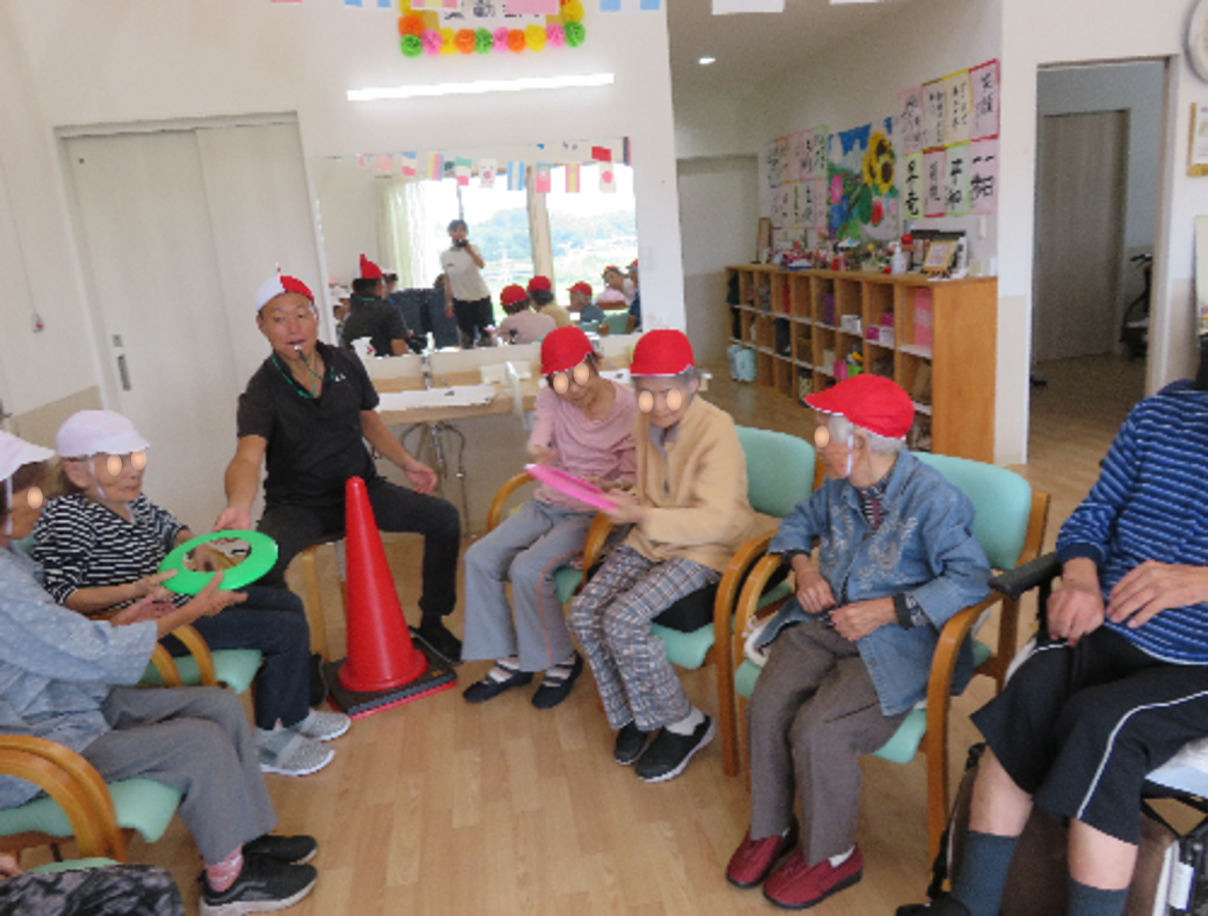 10月14日は「スポーツの日」でした。そこで、16日と17日の2日間に渡り「デイサービスCAN 秋の紅白大運動会」が開催されました。 運動会と言えばお弁当の話に花が咲きます。ある日「どうせなら弁当どん作っせ外で食ったらうめやろね」という声をいただくことができました。そこで今回は初の試みで「お弁当作りと昼食会」が運動会行事に追加されました。今月の運動会までの2週間は、集団レクリエーションの時間を活用し準備や競技の練習を行い当日を迎えました。 ![]() 運動会当日 選手宣誓 ![]() ![]() 準備体操 ![]() リレー (輪をリレーして戻って来て早くコーンに収めたチームの勝ちとなります) ![]() 綱引き (ラップの芯に綱を巻き付けて早く中心の目印を近づけた方の勝ちとなります) ![]() ![]() 玉入れ (動く玉入れ籠に自分のタイミングで玉を投げて多く入れたチームの勝ちとなります) ![]() 応援合戦 (各チームリーダーの音戸に合わせてチームの結束力を競います) ![]() ![]() 障害競走 (輪を投げコーンに入ったら足で綱を手繰り寄せ早くペットボトルを引き寄せた方の勝ちとなります) ![]() ![]() ファイナルリレー (1種目目のリレーでスタートして輪バトンを受けたスタッフが車椅子に乗り、くじ引きで顔飾りとかぶり物を身に着け車いすで早くゴールしたチームの勝ちとなります) ![]() ![]() ![]() 優勝 (大きくバンザイ) ![]() 準優勝 (小さくバンザイ) ![]() 閉会の言葉 ![]() お陰さまでデイサービスCANの秋の大運動会は無事に開催されました。どの種目も皆さまが主役になれる機会があり利用者さまの同士やスタッフとの仲間意識が高まるなど有意義な大会となりました。ご本人の確認やご家族への連絡のために用意されたノートには、それぞれ多くの声を頂く機会ともなりました。ありがとうございました。 |