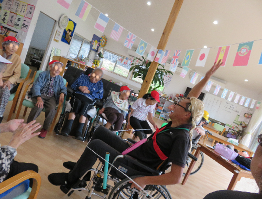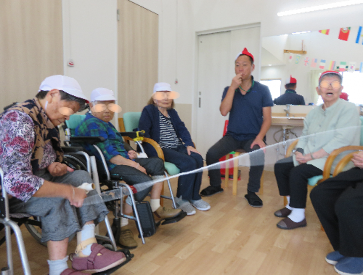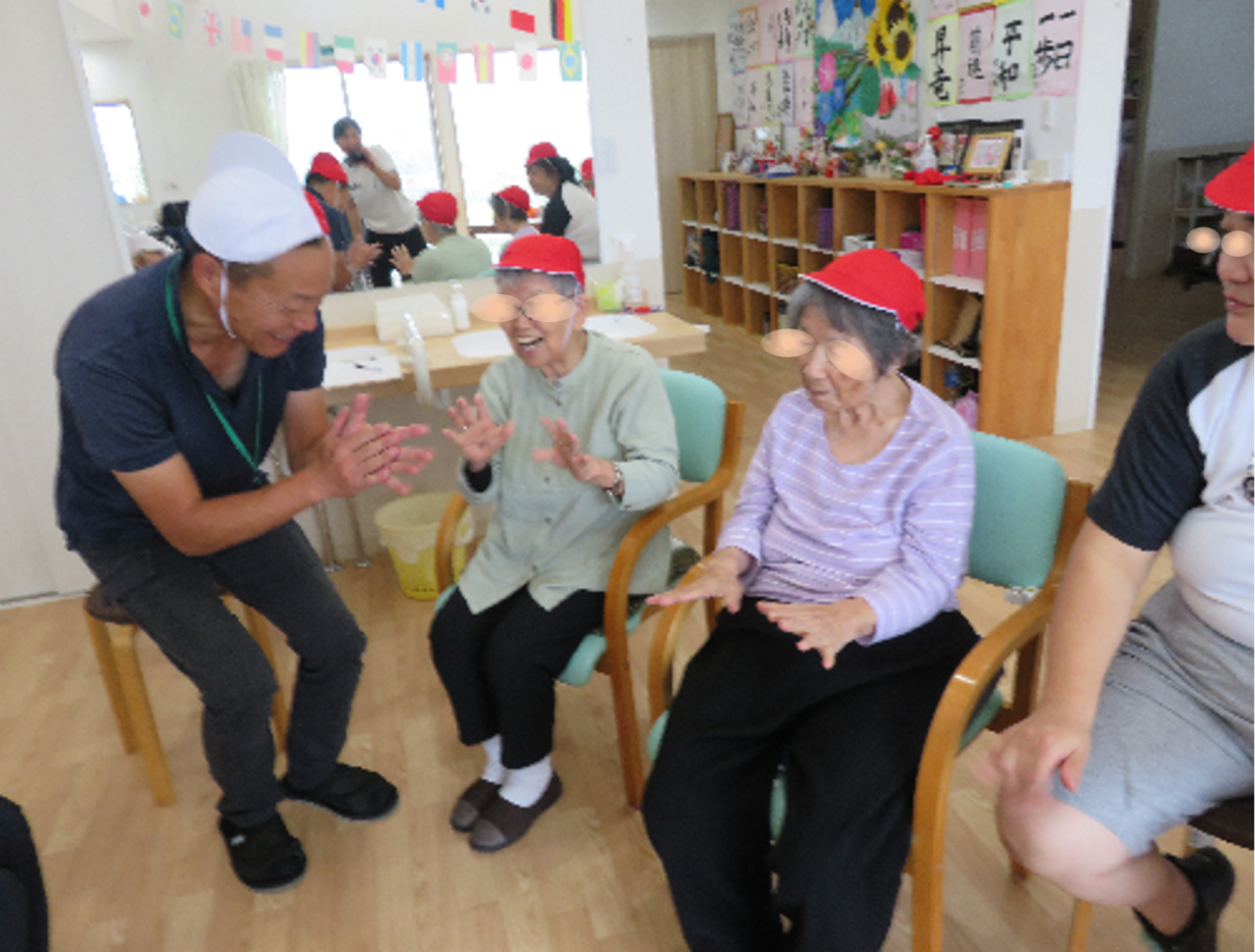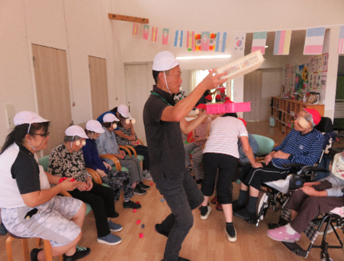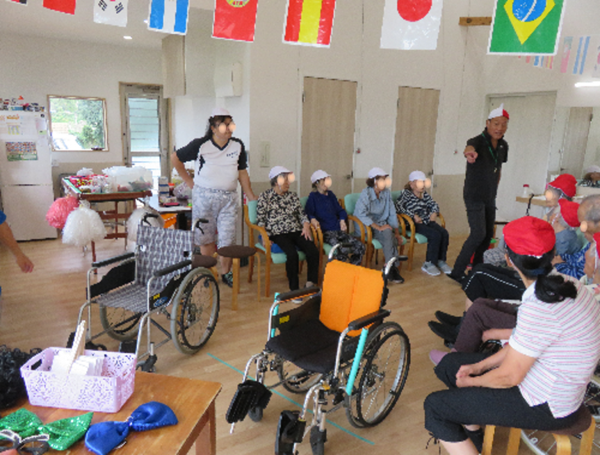 10月14日は「スポーツの日」でした。そこで、16日と17日の2日間に渡り「デイサービスCAN 秋の紅白大運動会」が開催されました。 運動会と言えばお弁当の話に花が咲きます。ある日「どうせなら弁当どん作っせ外で食ったらうめやろね」という声をいただくことができました。そこで今回は初の試みで「お弁当作りと昼食会」が運動会行事に追加されました。今月の運動会までの2週間は、集団レクリエーションの時間を活用し準備や競技の練習を行い当日を迎えました。 ![]() 運動会当日 選手宣誓 ![]() ![]() 準備体操 ![]() リレー (輪をリレーして戻って来て早くコーンに収めたチームの勝ちとなります) ![]() 綱引き (ラップの芯に綱を巻き付けて早く中心の目印を近づけた方の勝ちとなります) ![]() ![]() 玉入れ (動く玉入れ籠に自分のタイミングで玉を投げて多く入れたチームの勝ちとなります) ![]() 応援合戦 (各チームリーダーの音戸に合わせてチームの結束力を競います) ![]() ![]() 障害競走 (輪を投げコーンに入ったら足で綱を手繰り寄せ早くペットボトルを引き寄せた方の勝ちとなります) ![]() ![]() ファイナルリレー (1種目目のリレーでスタートして輪バトンを受けたスタッフが車椅子に乗り、くじ引きで顔飾りとかぶり物を身に着け車いすで早くゴールしたチームの勝ちとなります) ![]() ![]() ![]() 優勝 (大きくバンザイ) ![]() 準優勝 (小さくバンザイ) ![]() 閉会の言葉 ![]() お陰さまでデイサービスCANの秋の大運動会は無事に開催されました。どの種目も皆さまが主役になれる機会があり利用者さまの同士やスタッフとの仲間意識が高まるなど有意義な大会となりました。ご本人の確認やご家族への連絡のために用意されたノートには、それぞれ多くの声を頂く機会ともなりました。ありがとうございました。 |