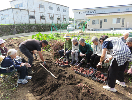 デイサービスCANの菜園から収穫された紅はるか・ニラや、収穫保存されている玉ねぎを用いて調理活動が行われました。 ![]() ![]() ![]() ![]() ![]() ![]() ![]() ![]() ![]() ![]() ![]() ![]() ![]() 完成、3時の茶請けとしておいしくいただきました。 11月に入りましたが、暑い日でした。 収穫作業に笑顔で参加していただき、ありがとうございました。